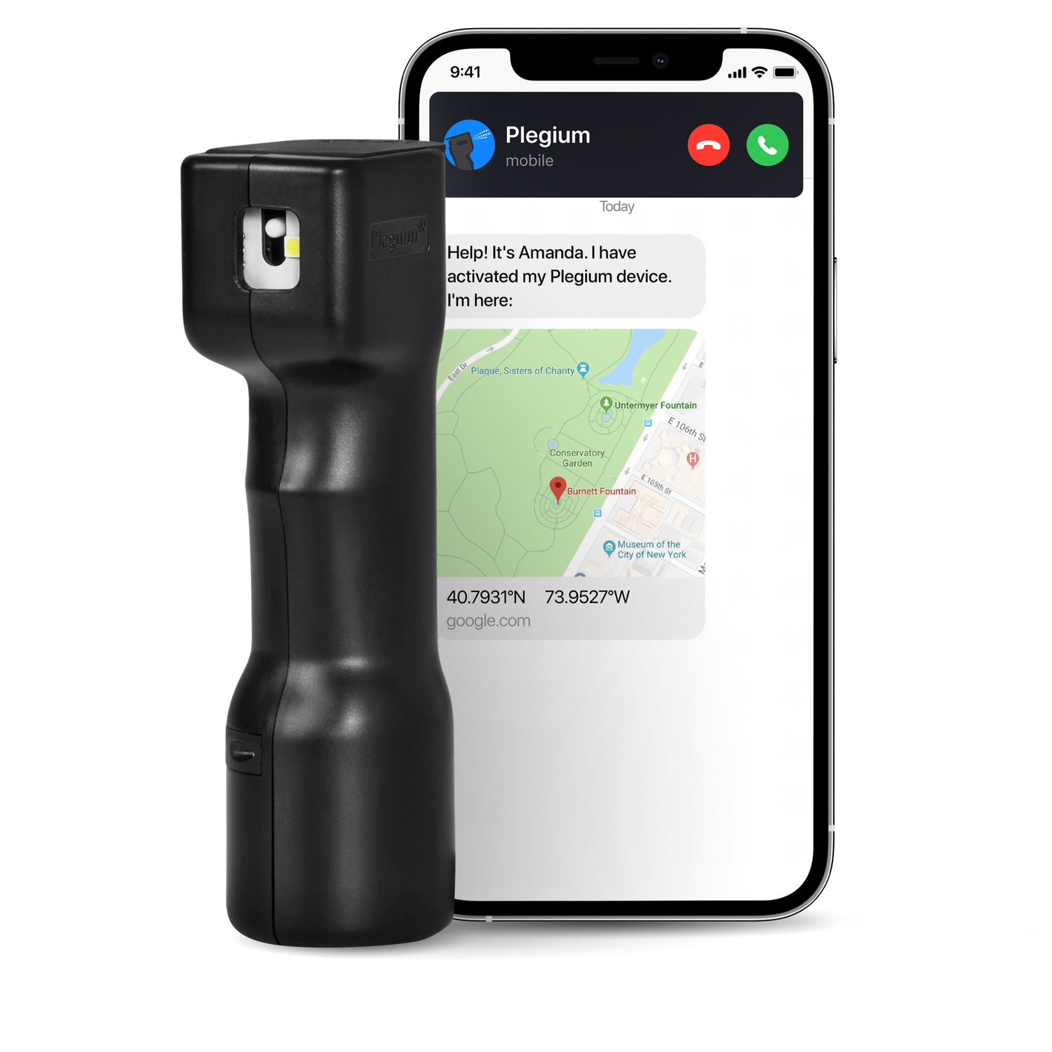 Plegium on yksi ainoista maailman turvasumuttimista, joka sumutetta käyttäessäsi lähettää automaattisesti tekstiviestin tarkoilla GPS-sijaintitiedoillasi ja hälyttää läheisesi puhelinsoitolla, jotta voisit saada apua nopeasti.